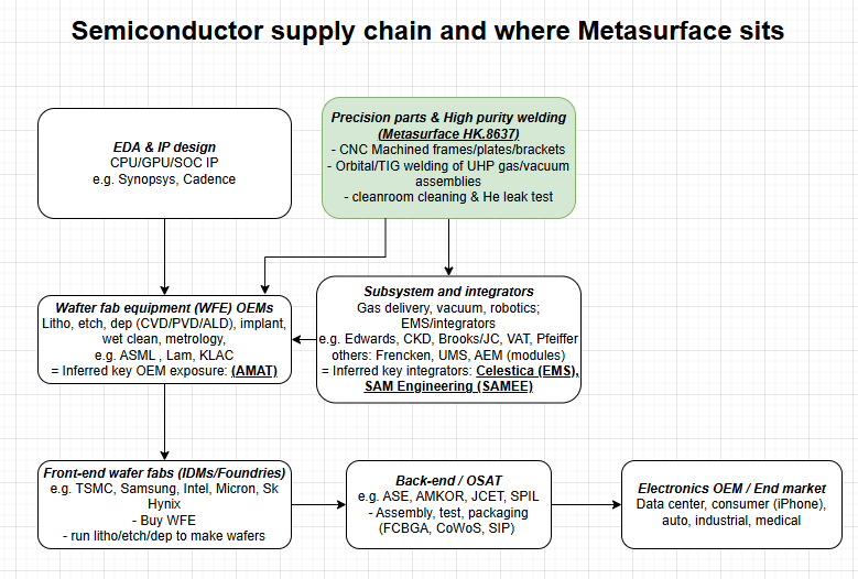 Founded in 2000, Metasurface (HKEX:8637) is a Singapore-headquartered precision engineering firm, specializing in high-precision machining and welding solutions. It provides critical component fabrication for semiconductor and aerospace OEMs.