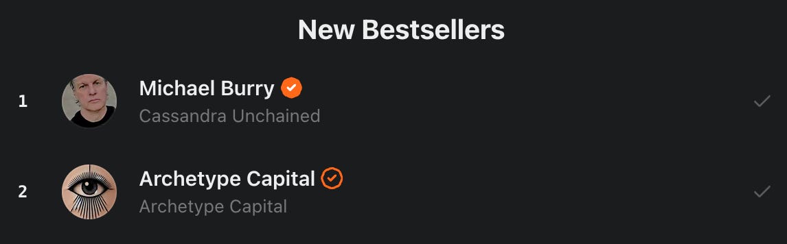 Remarkably, Davy’s post catapulted him to #2 on the new best seller list, behind Michael Burry.