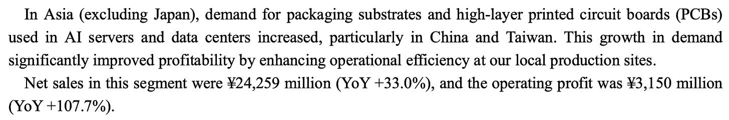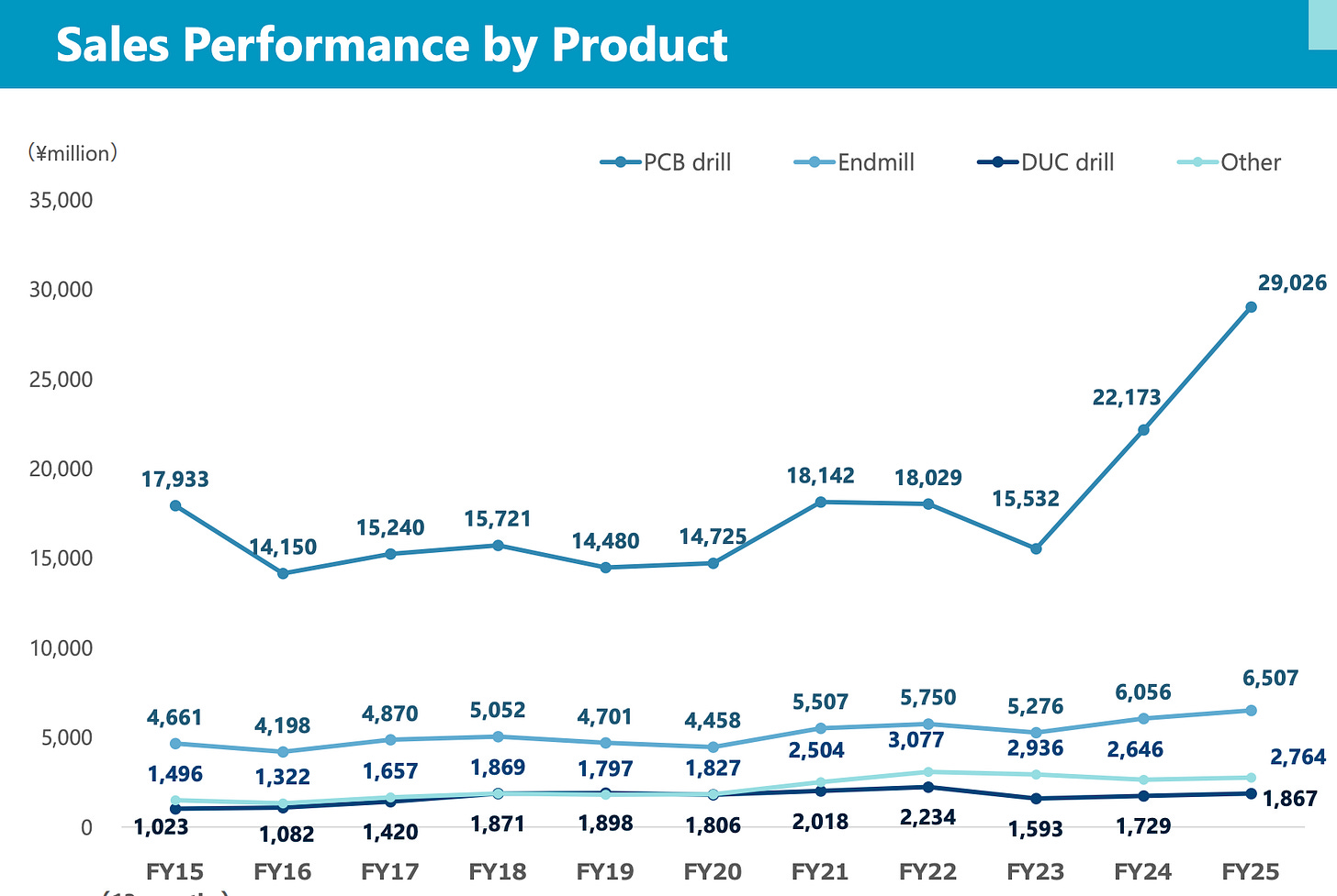 The picture is rosier if you zoom in on Asian PCB drill demand (ex Japan), where the AI PCB supply chain is concentrated: