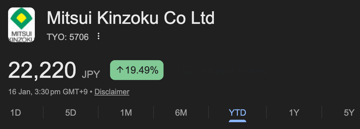 GS initiated coverage on Mitsui Kinzoku on 14 January:
