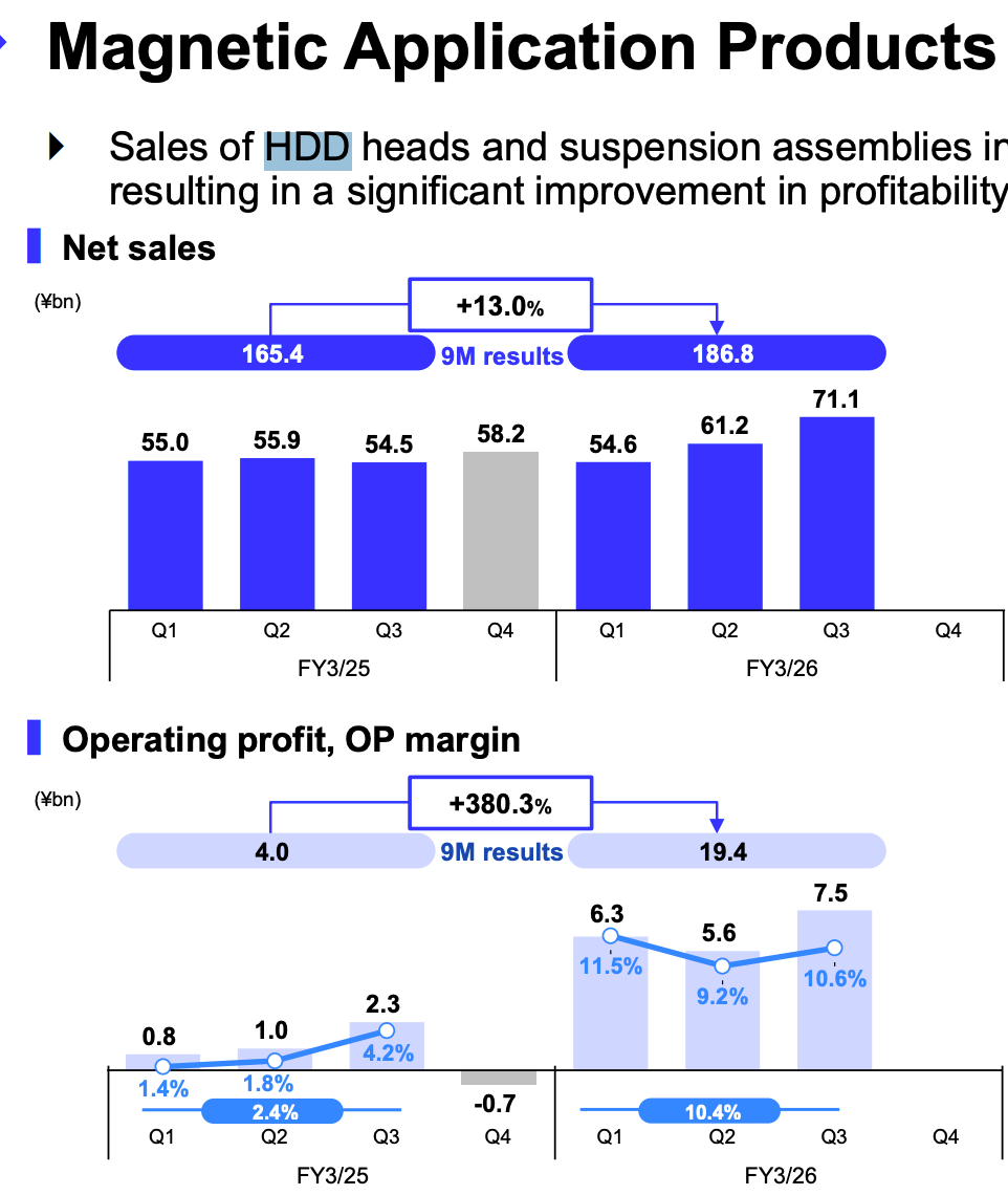 Once again, TDK’s HDD segment providing excellent read through for NHK Spring (+5.3%).