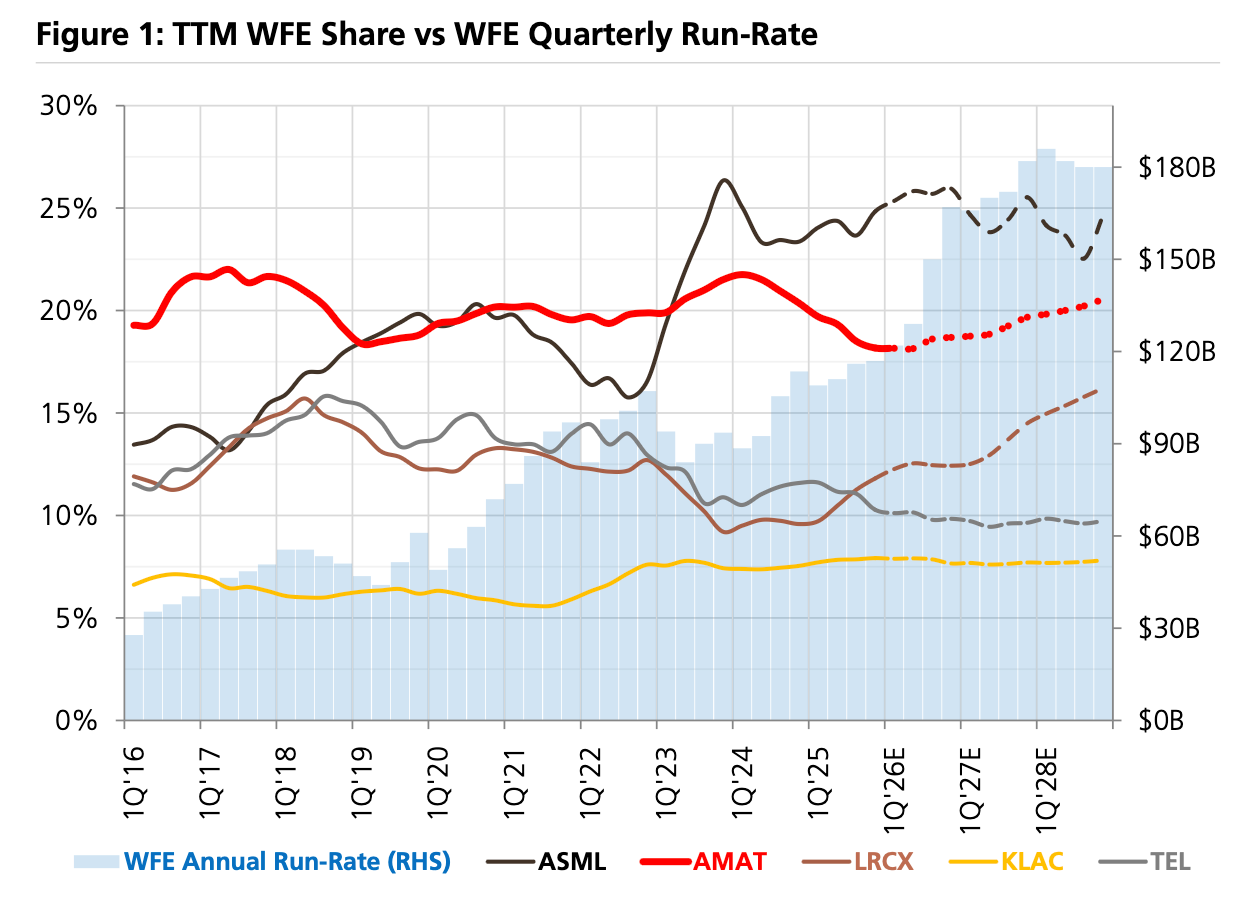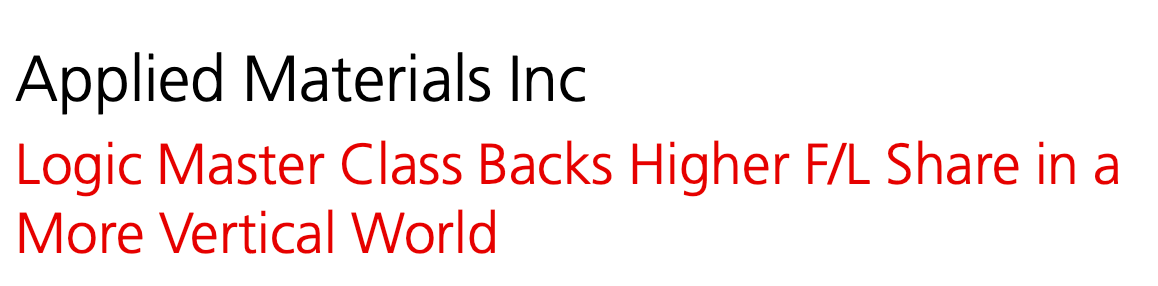 AMAT: UBS says management talking about incremental SAM capture opportunities from the industry’s shift to more vertical structures.