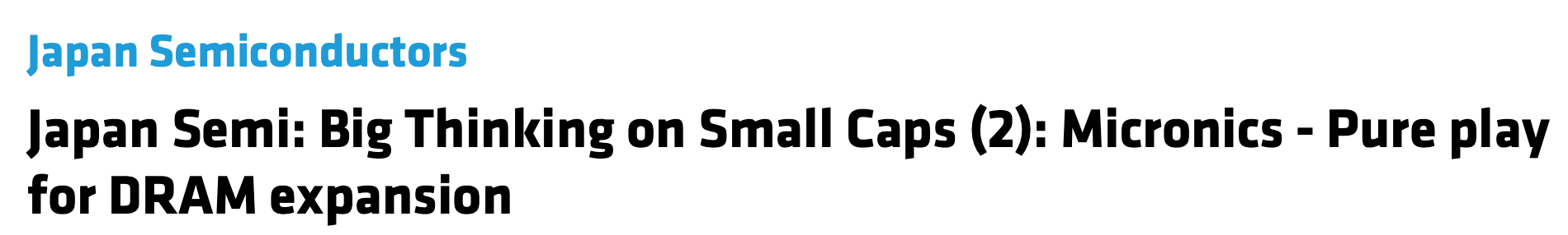 This report is part of a series of reports on Japan semi small cap companies, which we don’t cover but occupy unique positions in the supply chain and potentially benefit from the technology shifts. Investors may find them interesting as the small caps generally trade at lower multiples than large caps, but the growth profile is not necessarily inferior.
