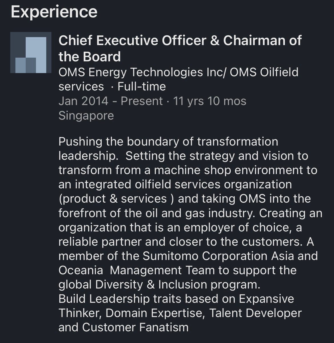 It has a 50 year history and has been led by its current CEO, How Meng Hock, for more than 10 years. He is a mild mannered engineer from Malaysia who spent a long career at various O&G brandnames before executing an MBO from Sumitomo Corporation in 2023. He ostensibly did the MBO to save jobs and to free the company from the bureaucratic neglect of Sumitomo. He now owns 61.78% of the company.