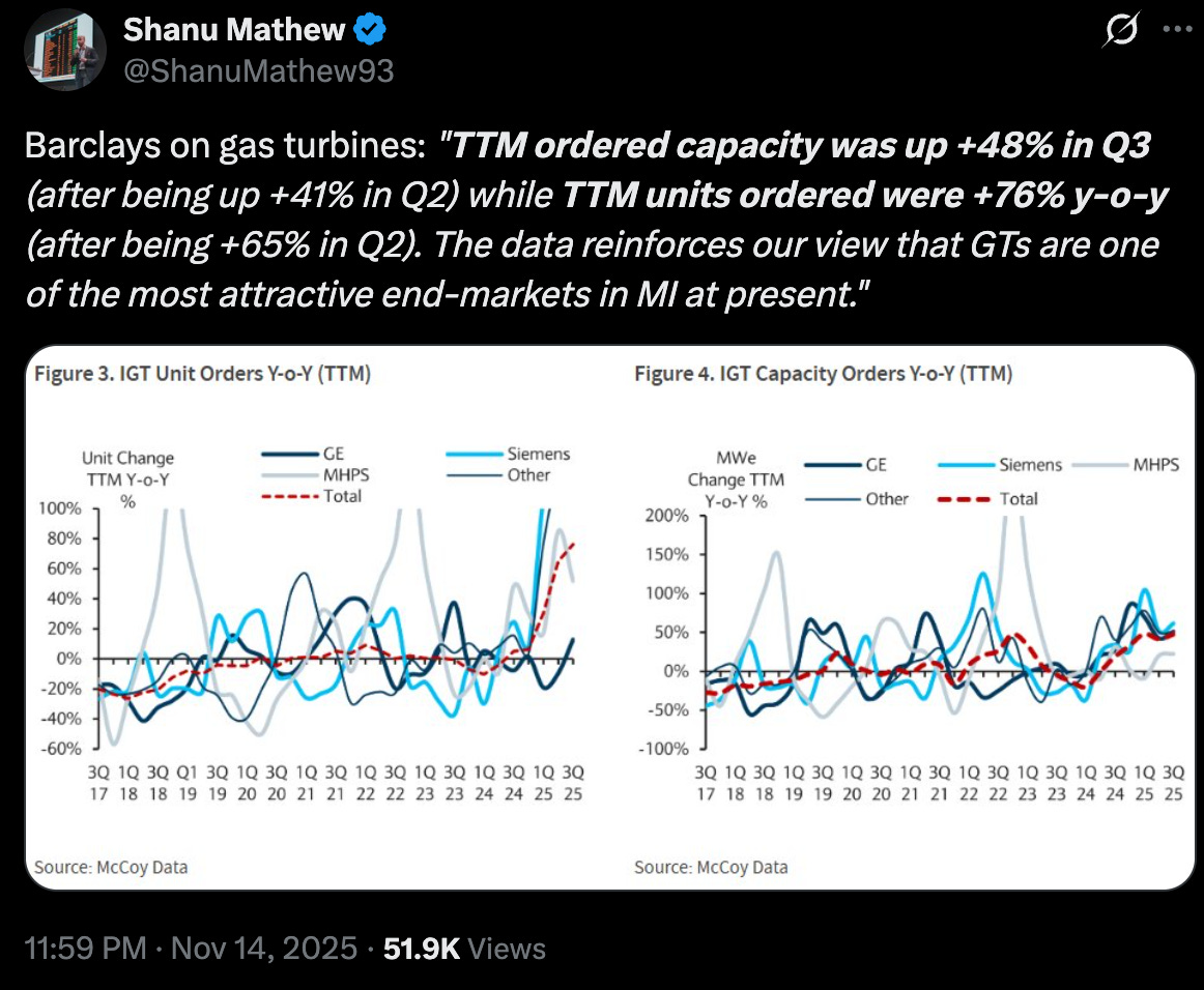 Barclays thinks gas turbines are one of the most attractive end-markets in Machine Intelligence: link.